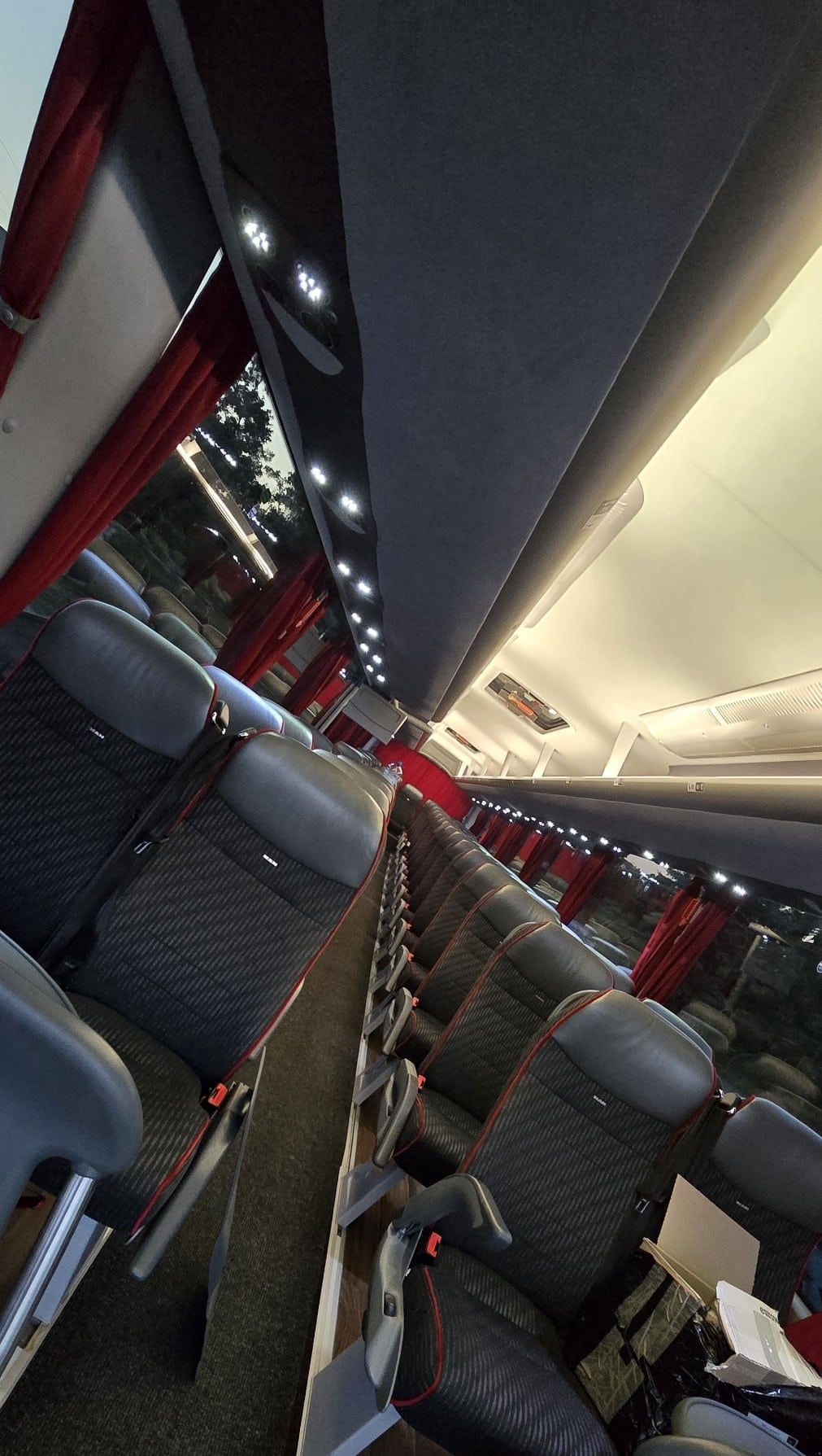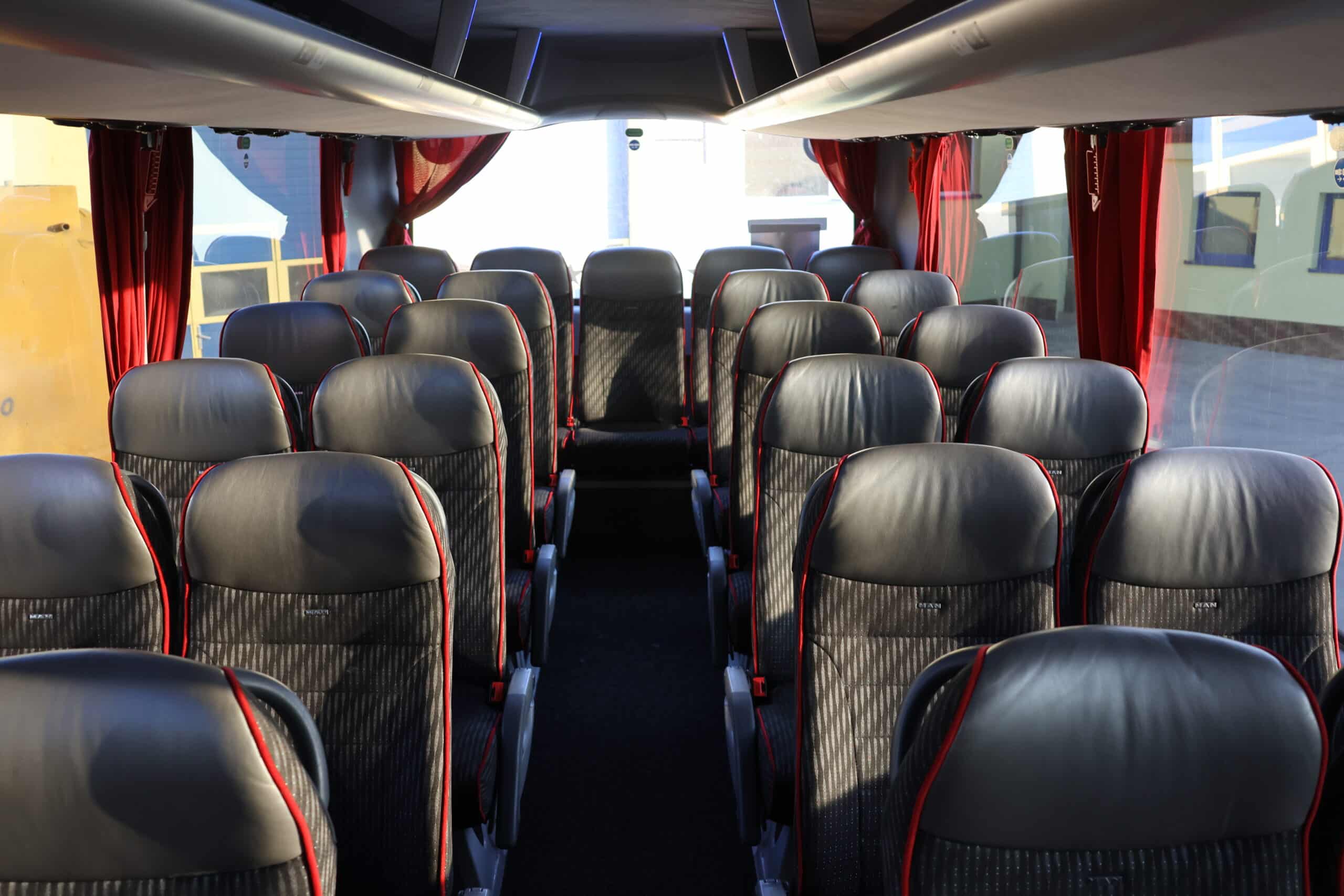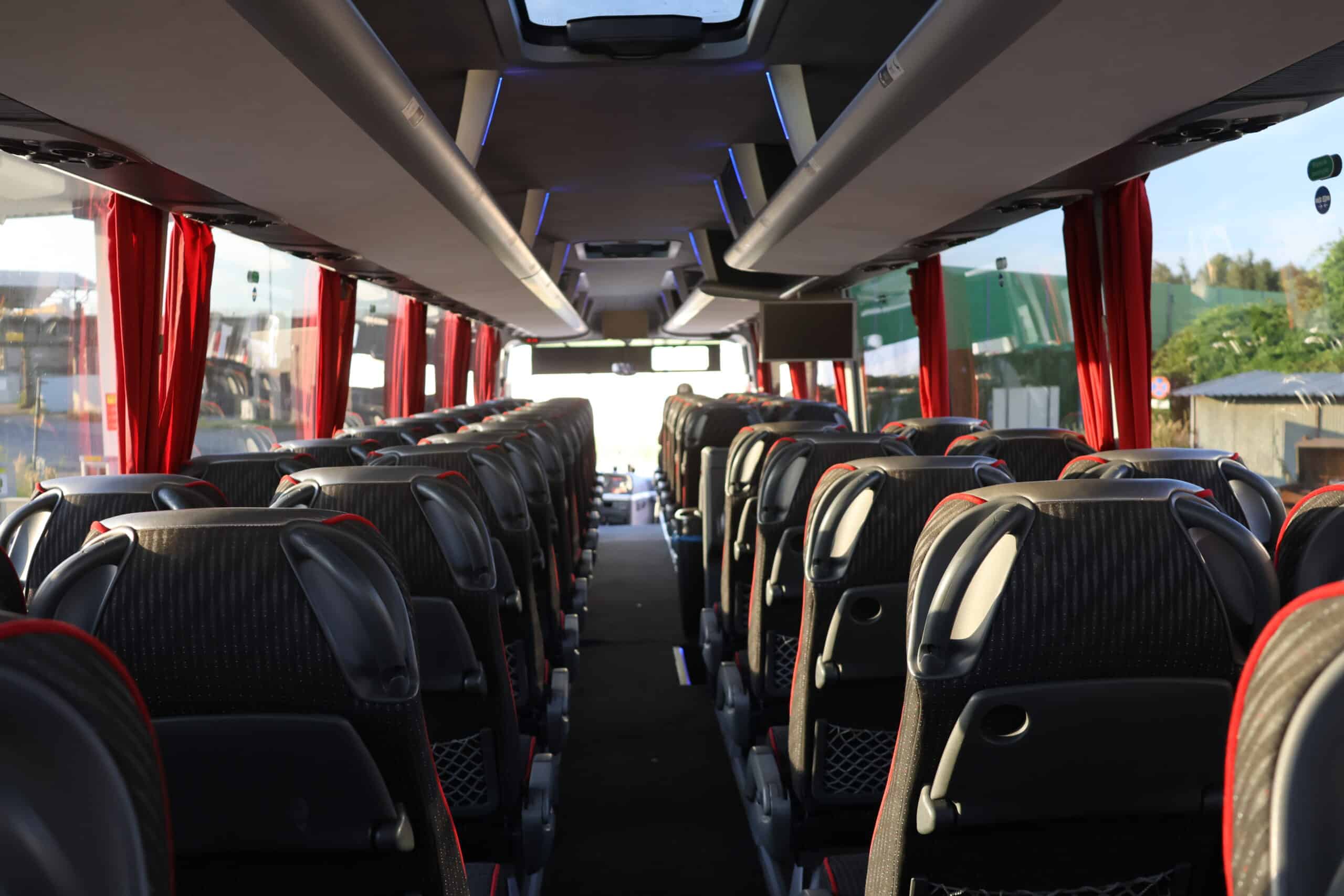 Przestronne i ergonomiczne fotele z pasami bezpieczeństwa dla każdego pasażera – idealne dla dużych grup szkolnych, turystycznych i firmowych. -